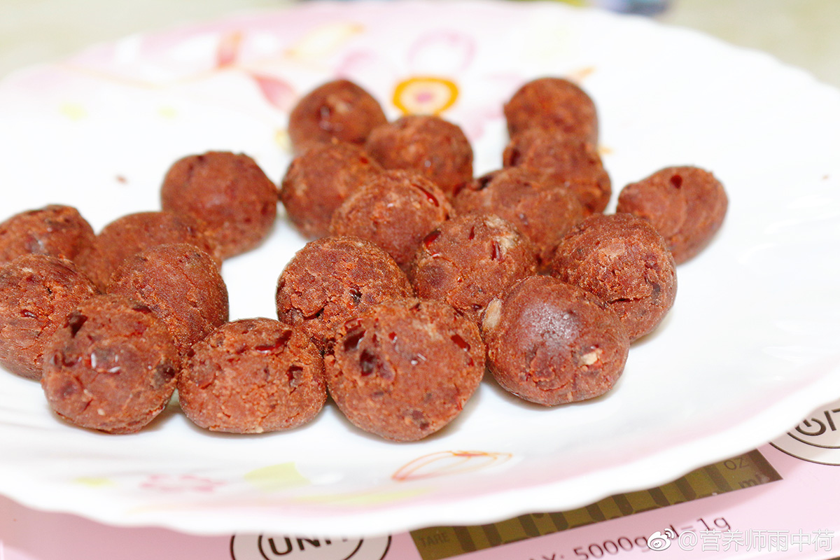 6、將紅豆餡分成大小相等的丸子形;
