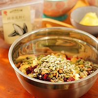3、堅果碎要用烤好的,種類根據自己的喜好來加,我用的是天然之林的烤葵瓜子、烤南瓜子和烤花生碎。還可以加開心果之類的。