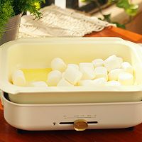 3、黃油放到不粘鍋裏,小火加熱至黃油完全融化。