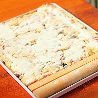 9、把整個團拿出來,放到學廚牛軋糖不粘烤盤裏。一直對折對折對折到把棉花糖跟材料混合均勻爲止。