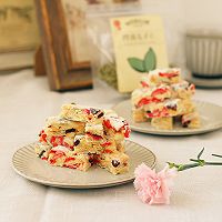 口感酥脆松軟,老小鹹宜,真不愧是網紅美食,牛軋糖混合著黃油的香氣,吃到嘴裏有酸酸甜甜的草莓幹、蔓越莓,還有越嚼越香的花生碎、南瓜子、葵花仁,再加上小奇福餅幹,真是好吃到停不下來。