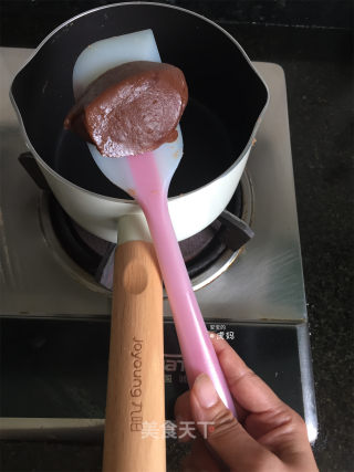 8.不粘鍋內倒入玉米油和香芋餡,小火翻炒至光滑不粘手爲止;