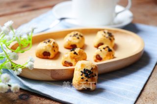 雞蛋1個,黃油40g,糖粉30g,低筋面粉90g,天然之林香芋餡70g,玉米油10g,熟黑芝麻適量。