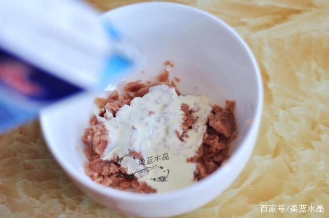 3.將香芋餡倒入碗中一些,倒入淡奶油攪成泥狀。