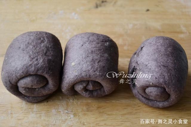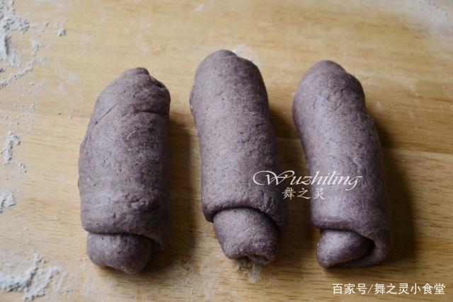 5、松弛好了,將面團再擀成長條,卷起來就是這樣短小的樣子。