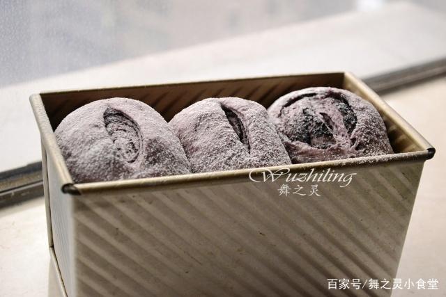 6、然後放入吐司盒裏面進行第二次的發酵,濕度在80%左右,溫度在35左右環境是最好的,大家發酵到8分滿,撒上黑米面包粉,然後表面割幾個口子。
