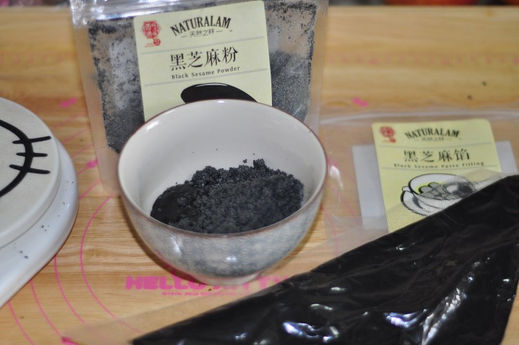 1、先調好黑芝麻餡,我們用天然之林的黑芝麻醬加入黑芝麻粉攪拌備用。