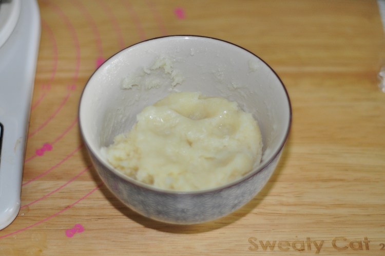 2、燙種要提前制作晾涼,冷藏一宿更好。20克高粉用40克的滾開水攪勻蓋上保鮮膜晾涼後放冰箱冷藏。用之前要取出來放至室溫。