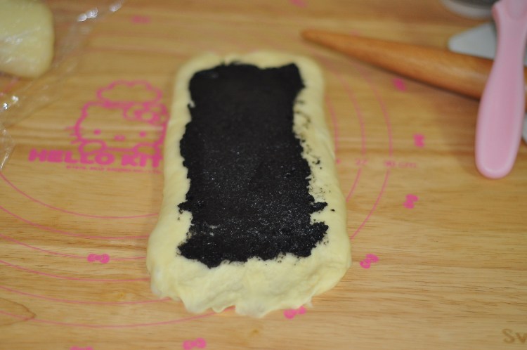 7、抹上黑芝麻醬。