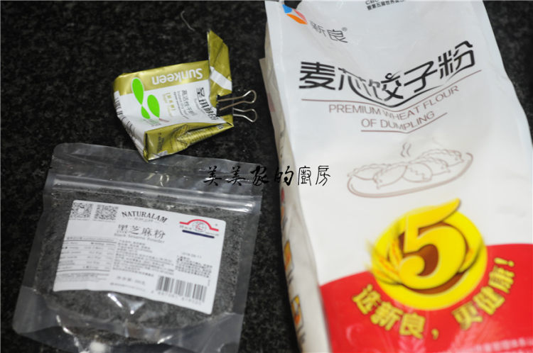 1、食材都准備好,我用的是現成的黑芝麻分,淘寶上有賣的,如果自己做,先將黑芝麻小火炒熟,晾涼後用料理機打成粉末。