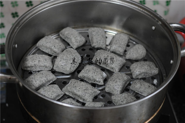 8、二發好的饅頭胚子放入刷了油的蒸鍋裏,水開後蒸10分鍾,關火,焖3分鍾左右即可。