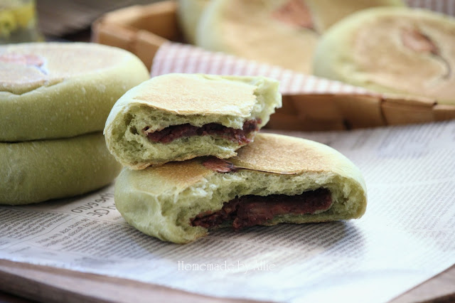 看到手中的紅豆蓉就想說來搓抹茶麵包吧,