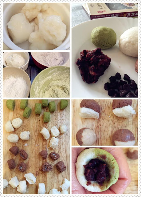 3. 綠茶粉團及朱古力粉團,跟以上做法完成。